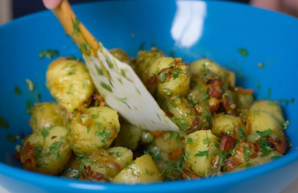 Получается сочный, ароматный и сытный салат — настоящий вкус немецкой кухни!
