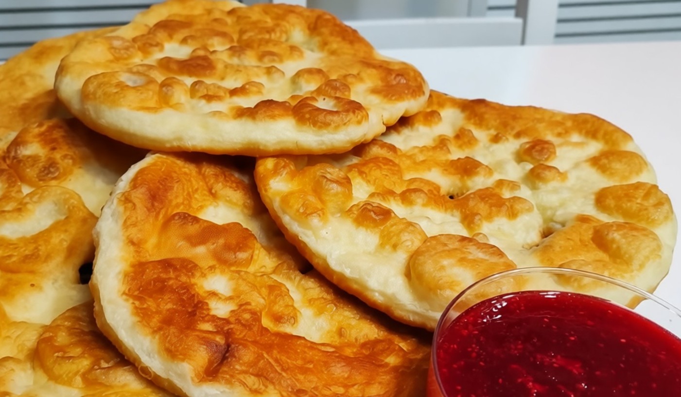 Готовые лепешки получаются румяными, ароматными и мягкими. Их можно подавать к супам, мясу или есть с вареньем и сладкими добавками.