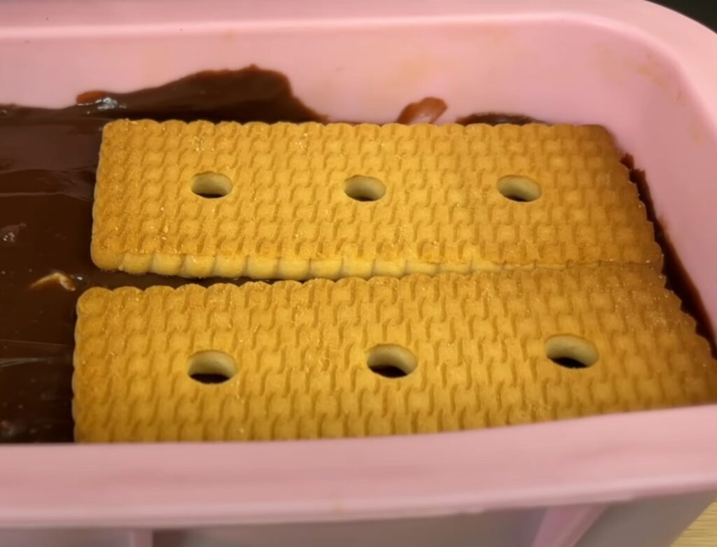 Соедините горячую шоколадную массу с орехами и печеньем, тщательно перемешайте.