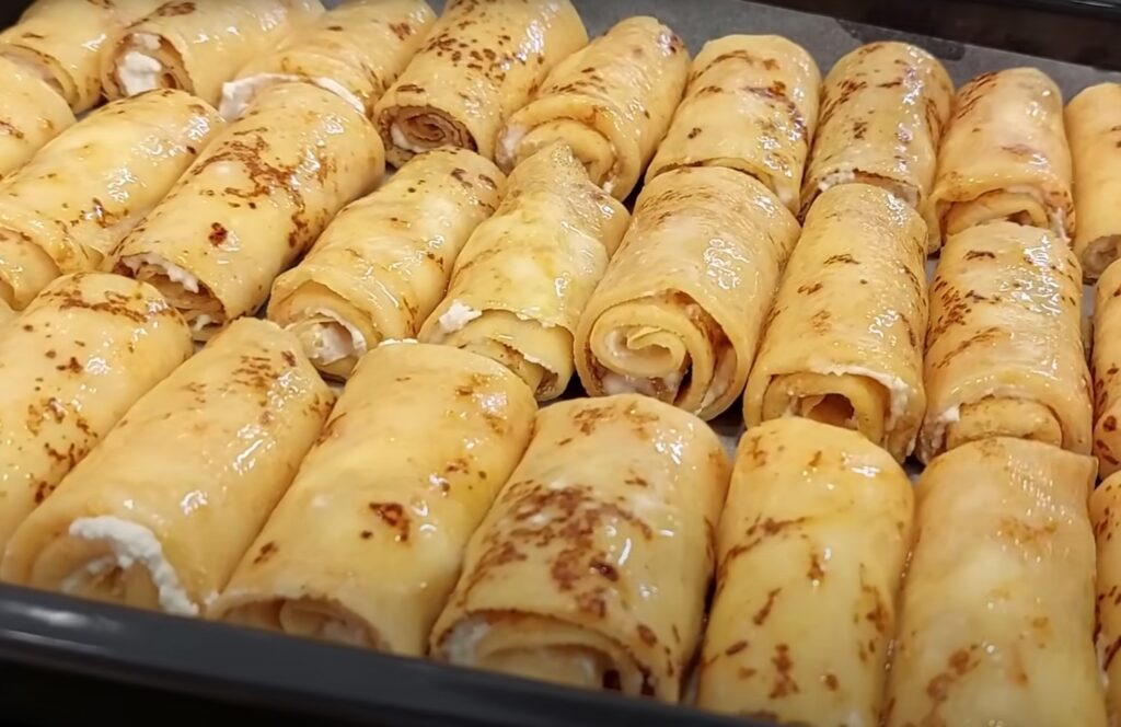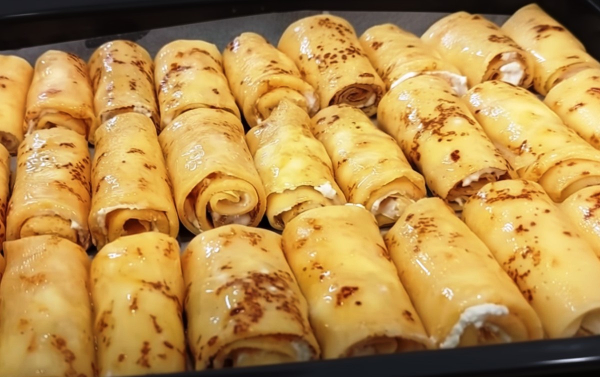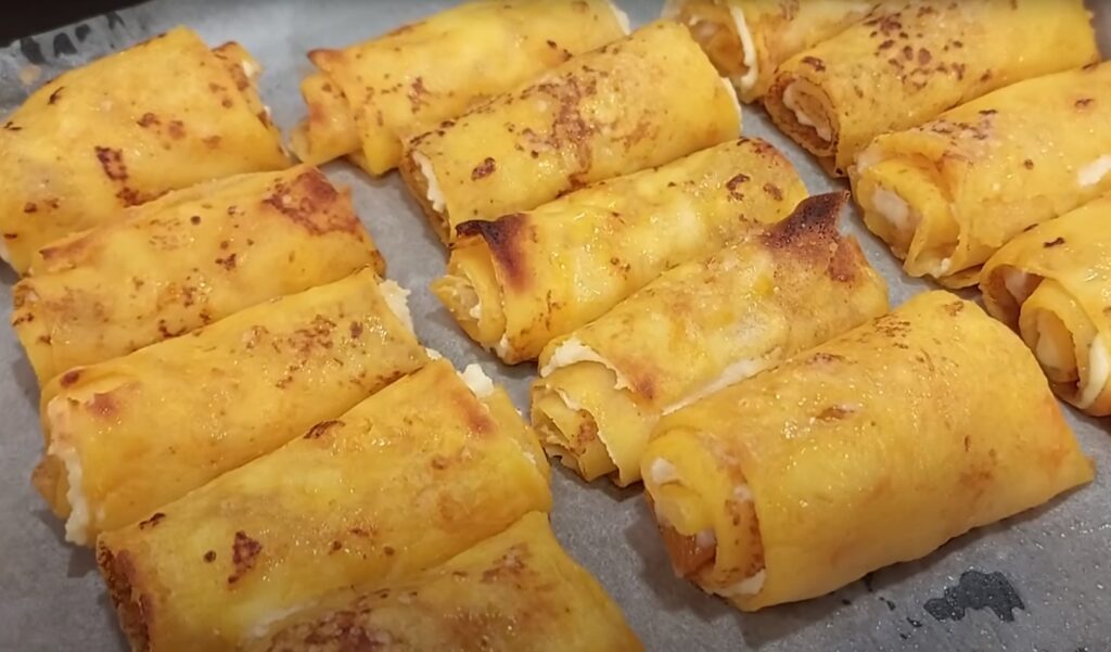Выложите трубочки на противень, смажьте сливочным маслом и запеките при 180 °C в течение 15–20 минут.
