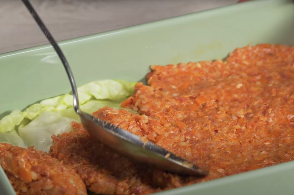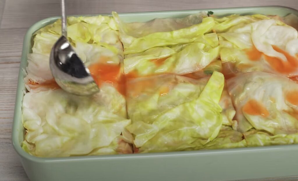Последний слой — капустные листья.