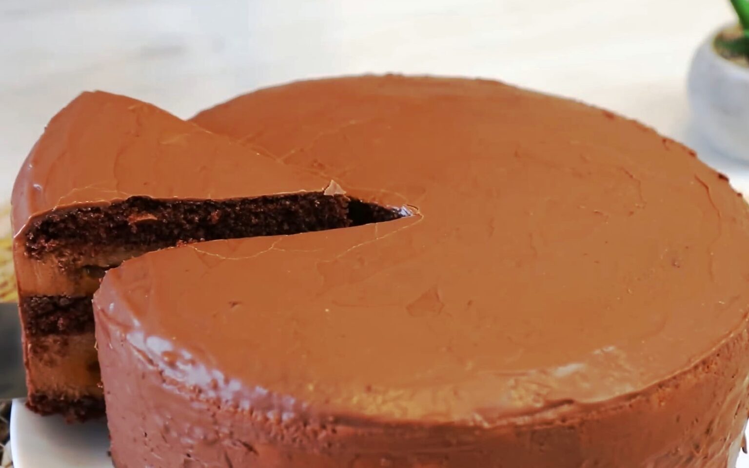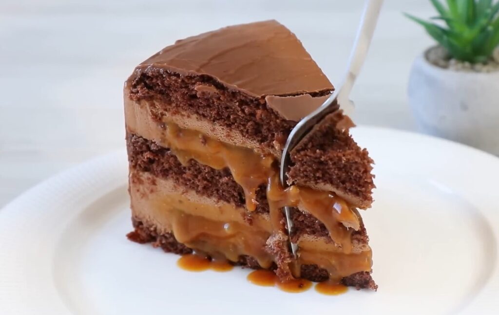 В итоге получается насыщенный шоколадный торт с карамельной начинкой, по вкусу напоминающий батончик «Марс».