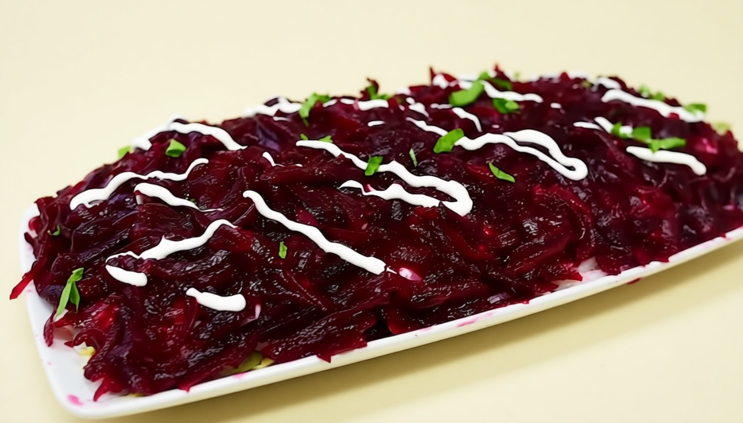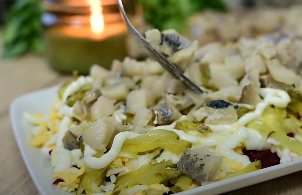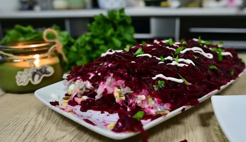 • 6-й слοй — οставшаяся свеκла, финальный слοй майοнеза.